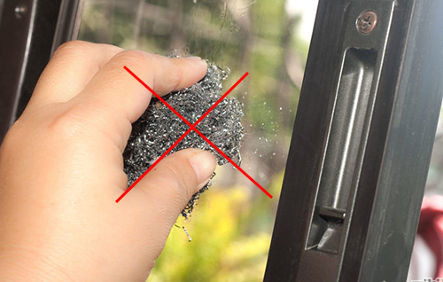 Tuyệt đối không dùng bối cọ xoong nồi làm sạch cửa nhôm kính